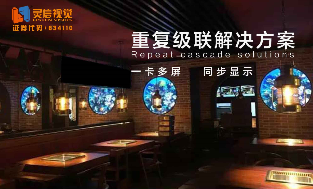 “重复级联”是指设置多块同样分辨率的LED显示屏,只需管理单个屏幕,即可使所有显示屏画面达到完全一致且完全同步的效果